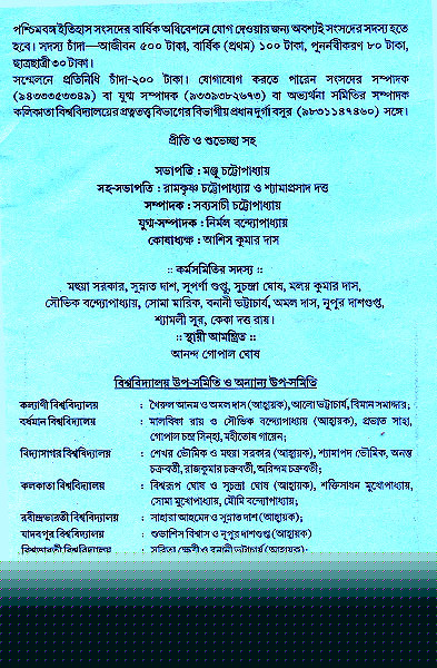 Paschim Banga Itihas Samsad (Founded in 1978 in Kolkata) is one of the largest regional associations of professional historians and history- inclined people in West Bengal. It has maintained close links with the Indian History Congress for more than a decade now. It has It has consistently tried to promote the cause of teaching and Learn more...